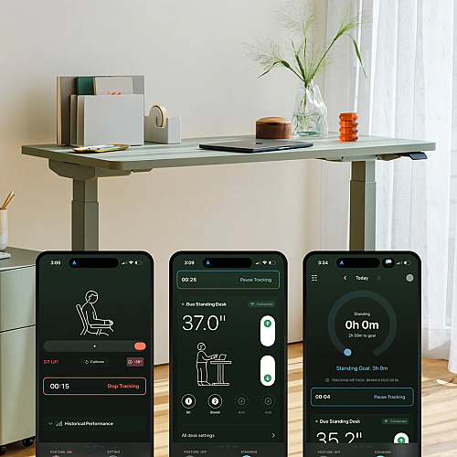 The app’s full feature set depends on the right hardware. The Duo Standing Desk from Branch was designed with this integration in mind.